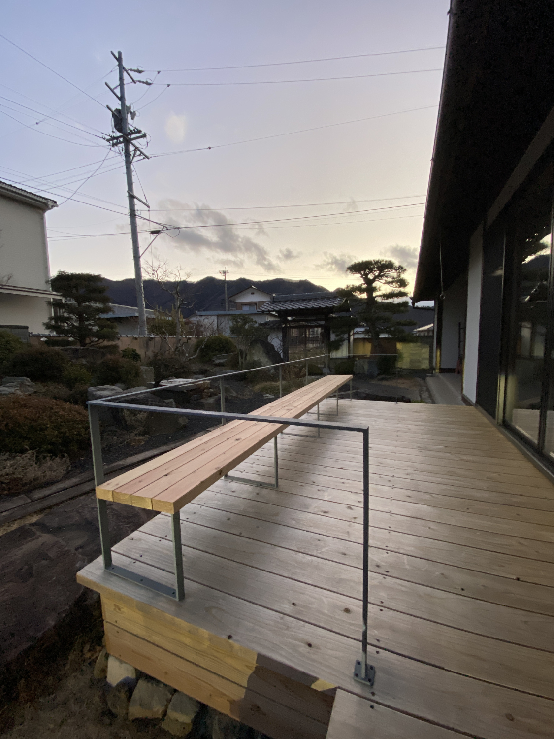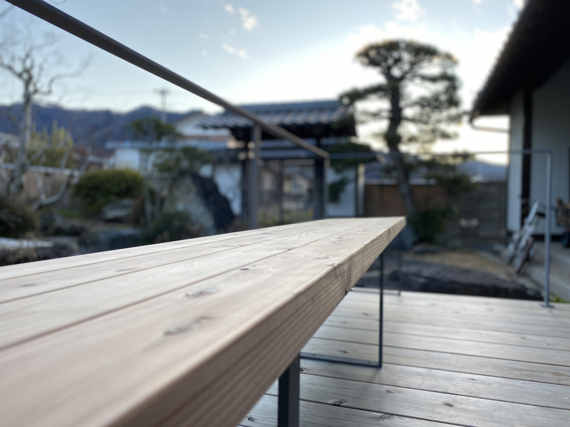 このベンチはオリジナルというより、県外で見学した新築住宅でインスパイアーされてHUCOSなりのアレンジを加えた作品です。