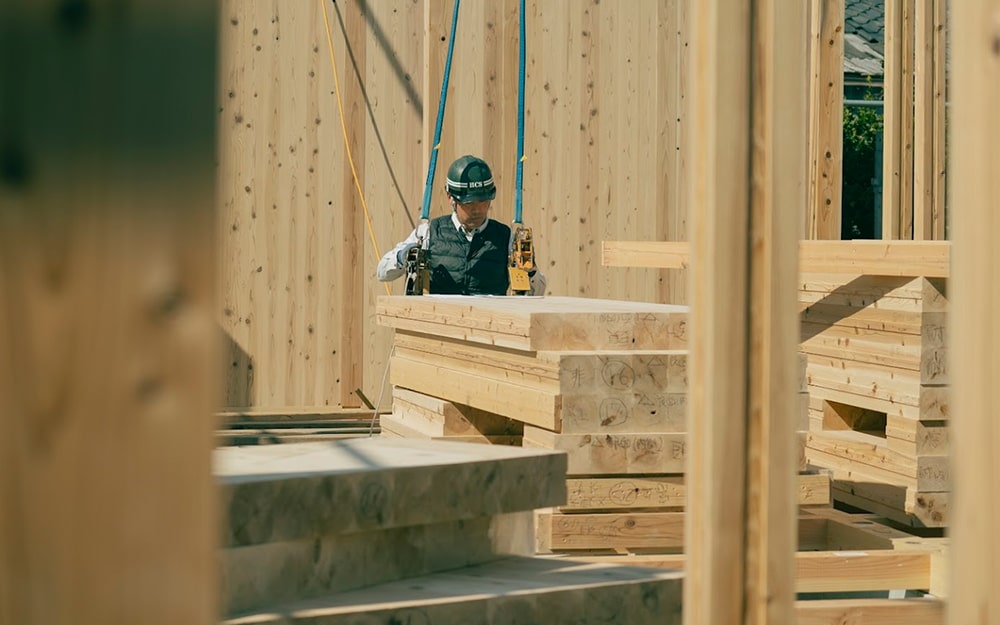 建築時はもちろん、将来的な解体時にも再利用できる素材を選ぶことを心がけています。中でも最も大きな要素は構造材です。タテログに使われる木材は大きな木の塊で、状態と寸法が合えば何世代にもわたって使い続けることが可能です。