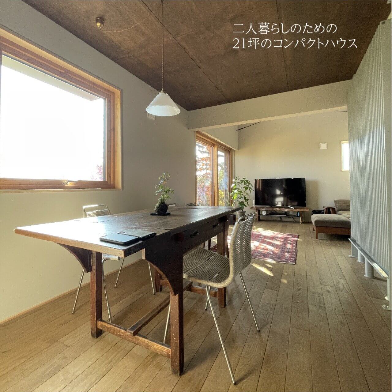 オーナー夫妻のこだわりが詰まった約21坪の「小さな家」。1日限り6組限定のオープンハウスを開催させていただきます。栗の木の無垢フローリング、温かみのある木製サッシ、外壁にも板張りをアクセントに。古材を用いたテレビボードやアンティーク家具たち・・・