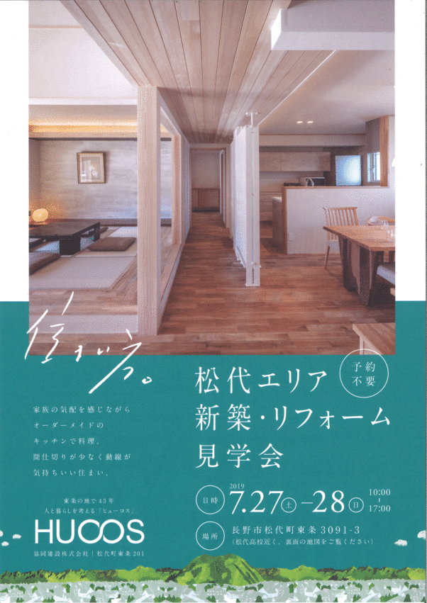 松代内では新聞折込が毎週入ってると思いますが、7月27日(土)28日(日)は3会場同時内覧会を行います。