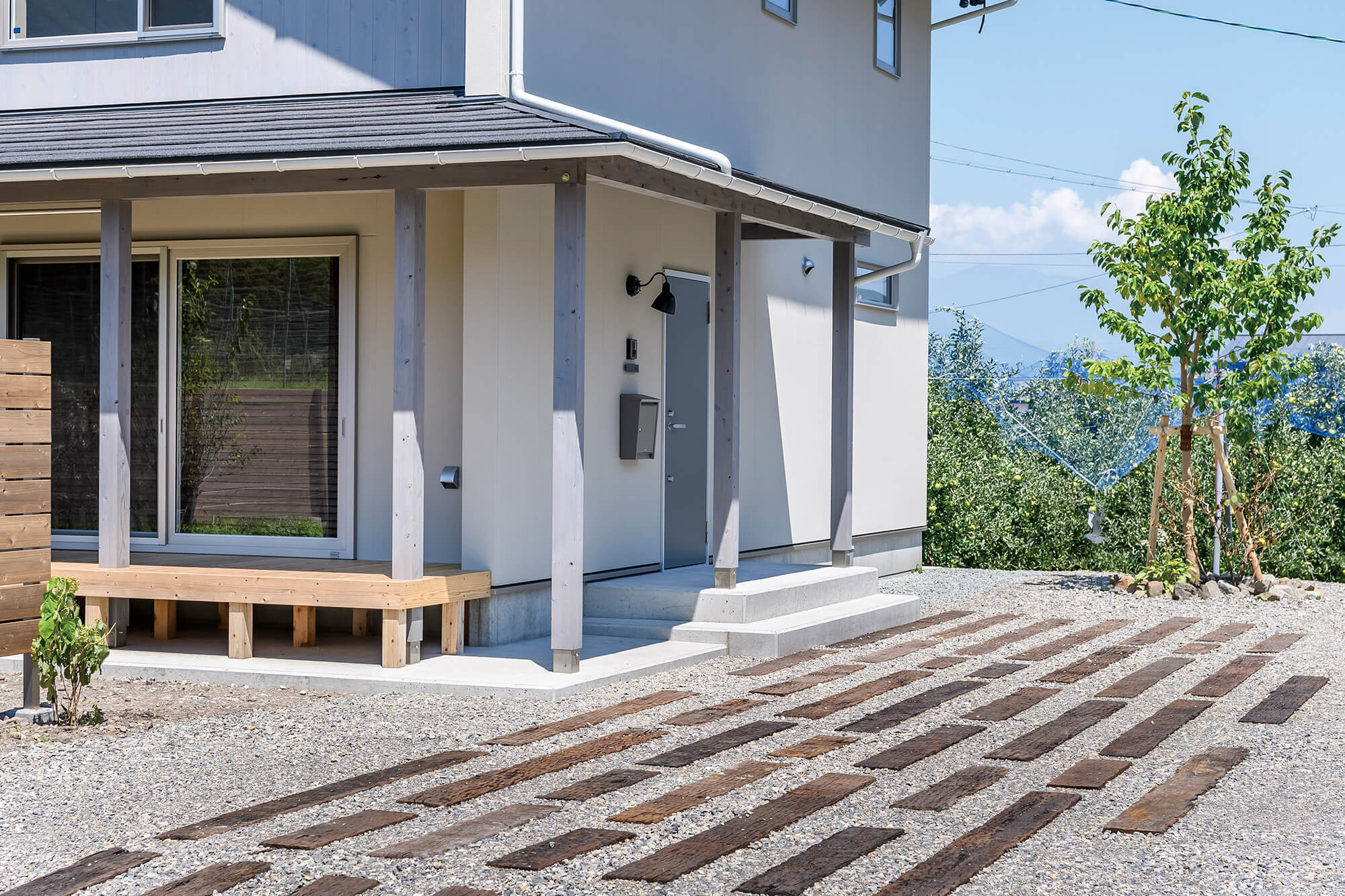 子どもを授かり、家を建てようと決めたものの、ふたりとも長野に土地勘はなく。山に近い郊外で、季節が感じられる。