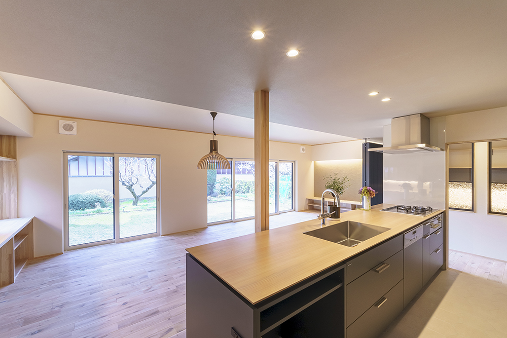 築約40年のお住まいを、生活居住スペースを中心に大々的にリノベーションしました。断熱性能をぐーんと高め、PS社のパネルヒーターを設置したことにより快適性は抜群に上がります。外観はほとんど変わりなく内部を一新、元々ある広いお庭も素敵です。