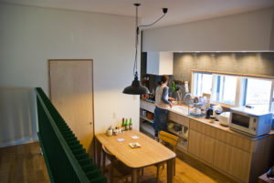 丁寧に住み続けてきた築30年ほどの家を二世帯住宅としてフルリノベーション。玄関と浴室は共有、二階に子世帯のLDKを設けました。耐震補強を施し(上部構造評点0.843→1.087)、さらに長野県の「信州健康ゼロエネ住宅助成金」(令和4年度、大規模改修/助成金額:1,000,000円)の助成を受けて、断熱性能の向上と全ての窓と玄関ドアの交換(UA値 0.37W/㎡K)を行いました。延べ床面積197.5㎡(約60坪)の広い家全体をエアコン3台で全館冷暖房。暑い夏そして寒さ厳しい冬も、より快適になった家で、3世代家族8名のにぎやかな暮らしがスタートします。