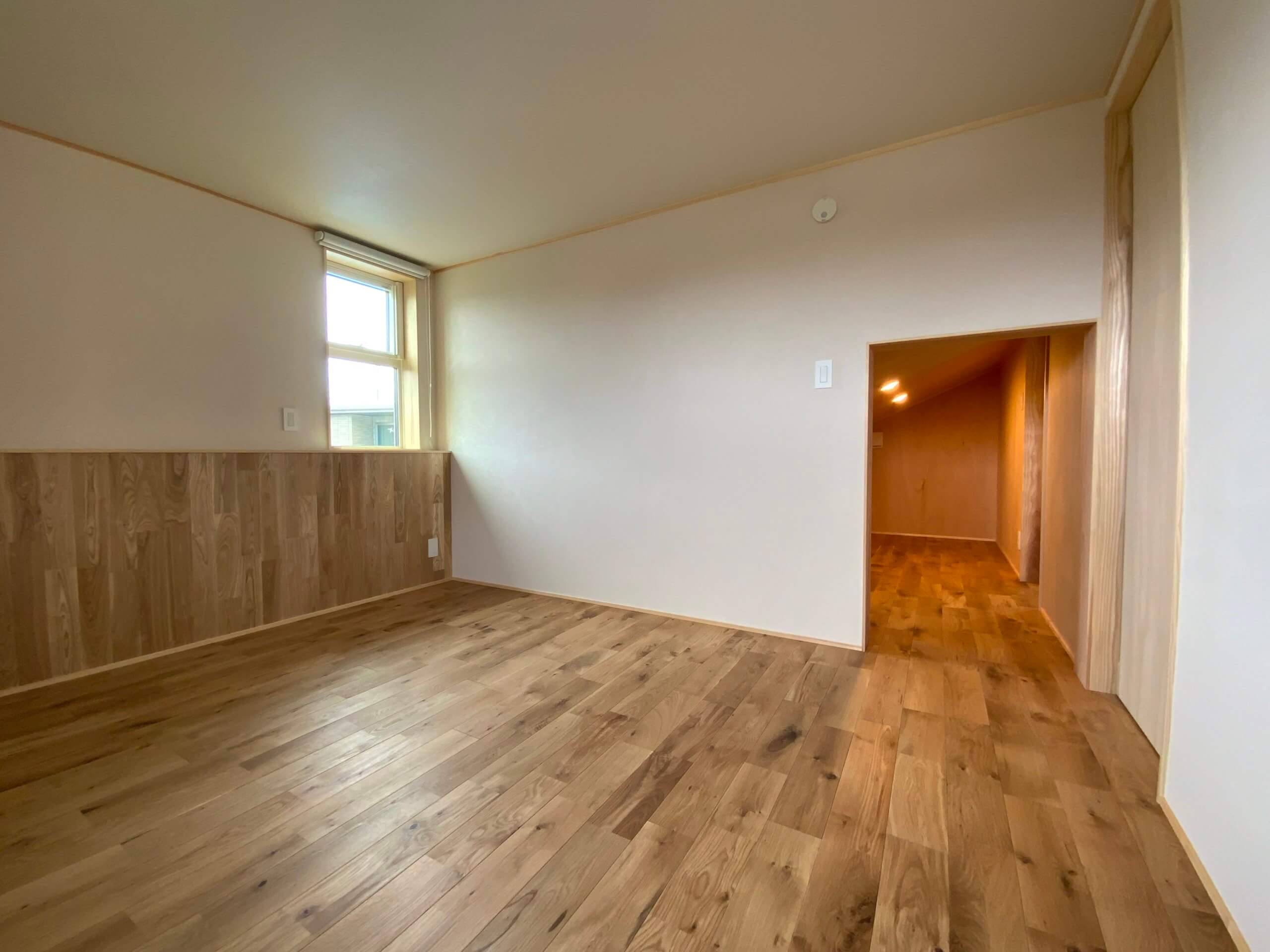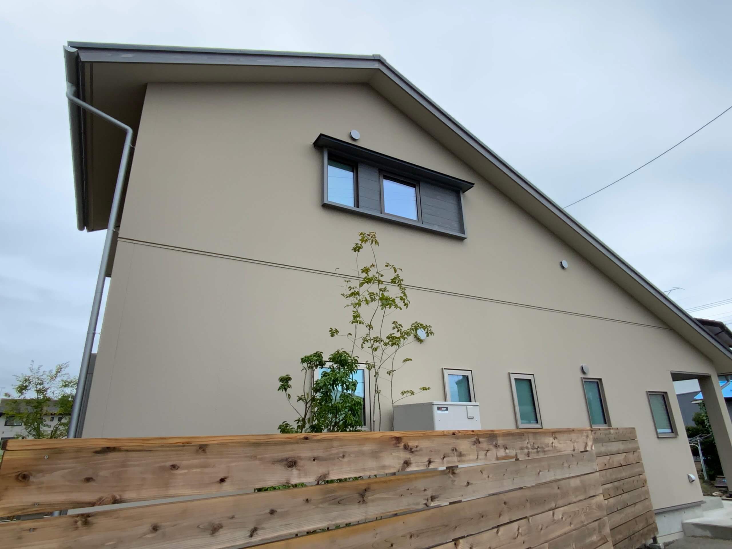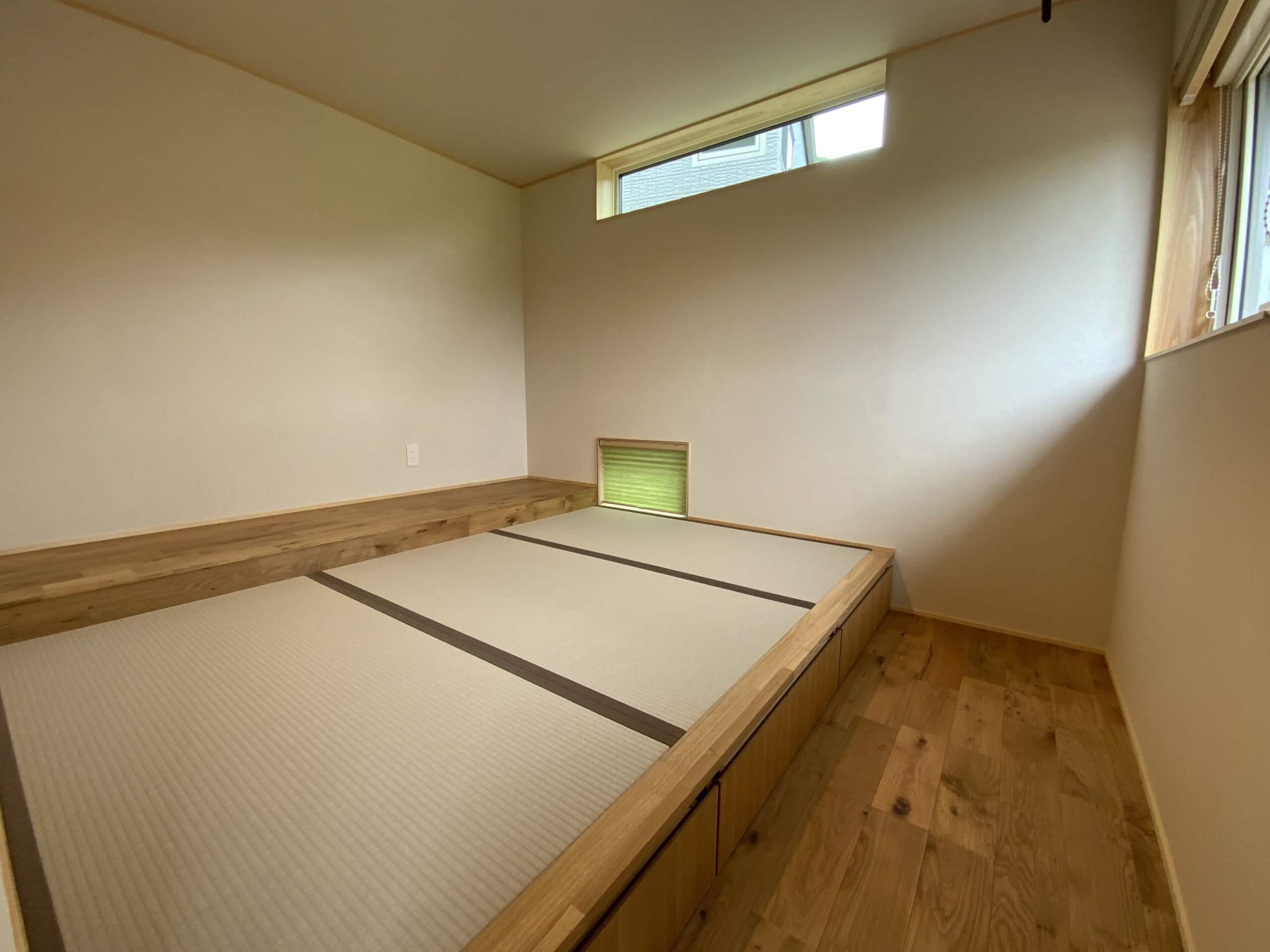 ご夫婦とお母さん 、そして将来の子供たち ・・・ 二世帯で仲良く暮らすことのできるのびのびとした雰囲気の住まいが完成。玄関、キッチン、お風呂等はすべて共有。1階にはお母さんの寝室とコンパクトな和室も備え、2階は明るい寝室、大きな窓の子供部屋とフリースペース、そしてたっぷりの収納も。今回も玄関までのアプローチや駐車スペース、広々ウッドデッキ、そして植栽など、トータルでの住みやすさにもこだわりました。