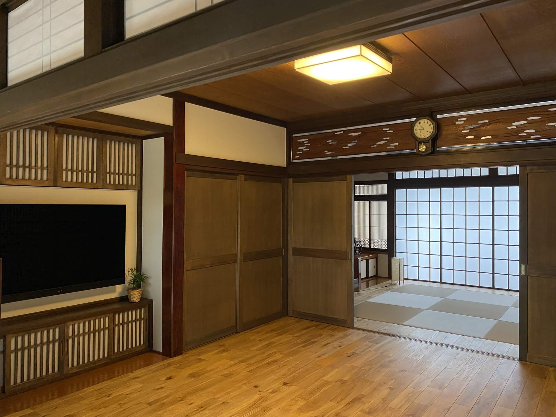 和室の趣のある雰囲気を活かしながら、現代の生活様式に合わせた快適リフォーム。少し年季の入ってきた襖や障子を、木製建具やシンプルな障子入れ替えることで、落ち着いた空間の中にも、洗練された雰囲気も感じることができます。建物の味を残しながら、快適でかつ木の温かみを感じられる、そんなリフォームになりました。
