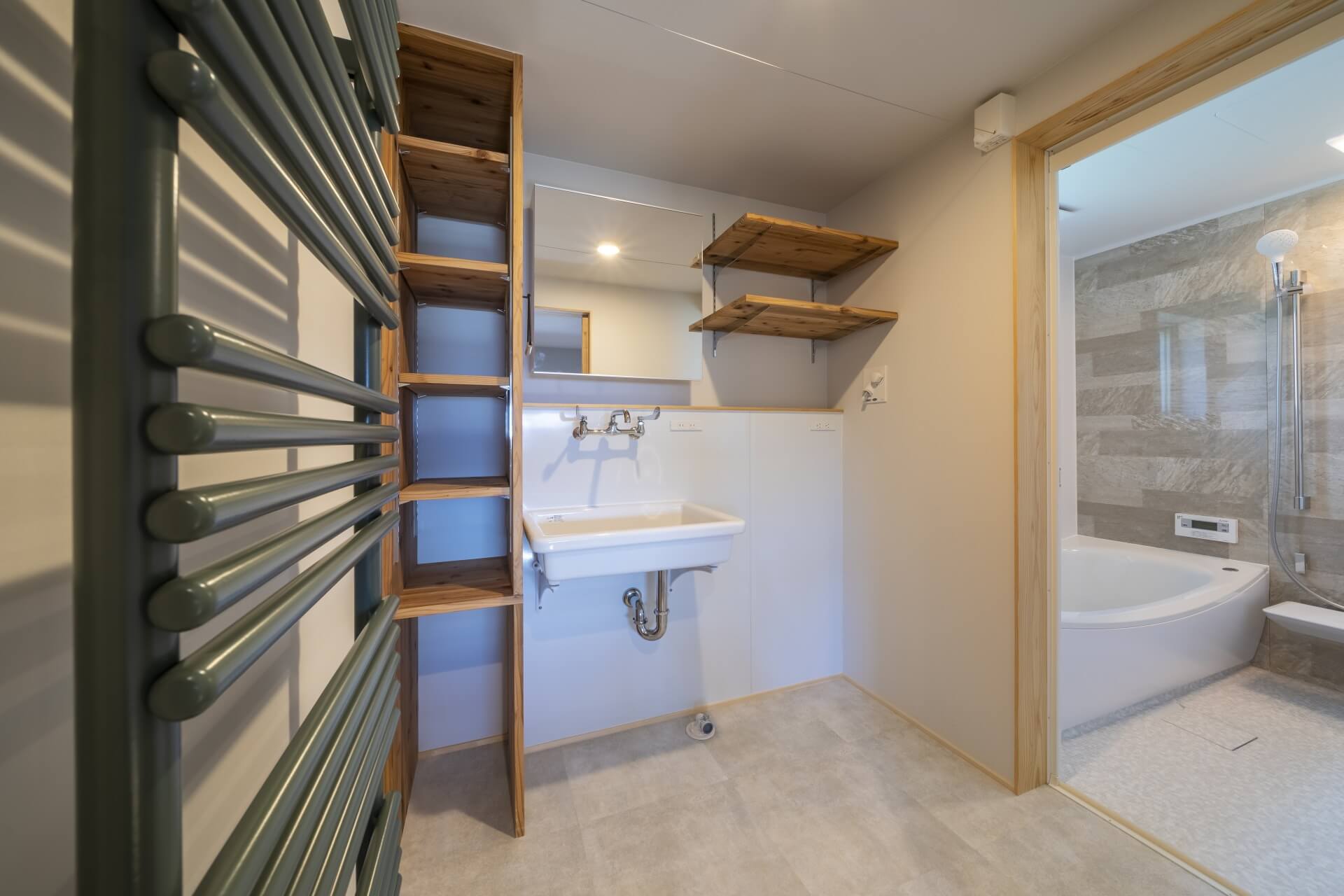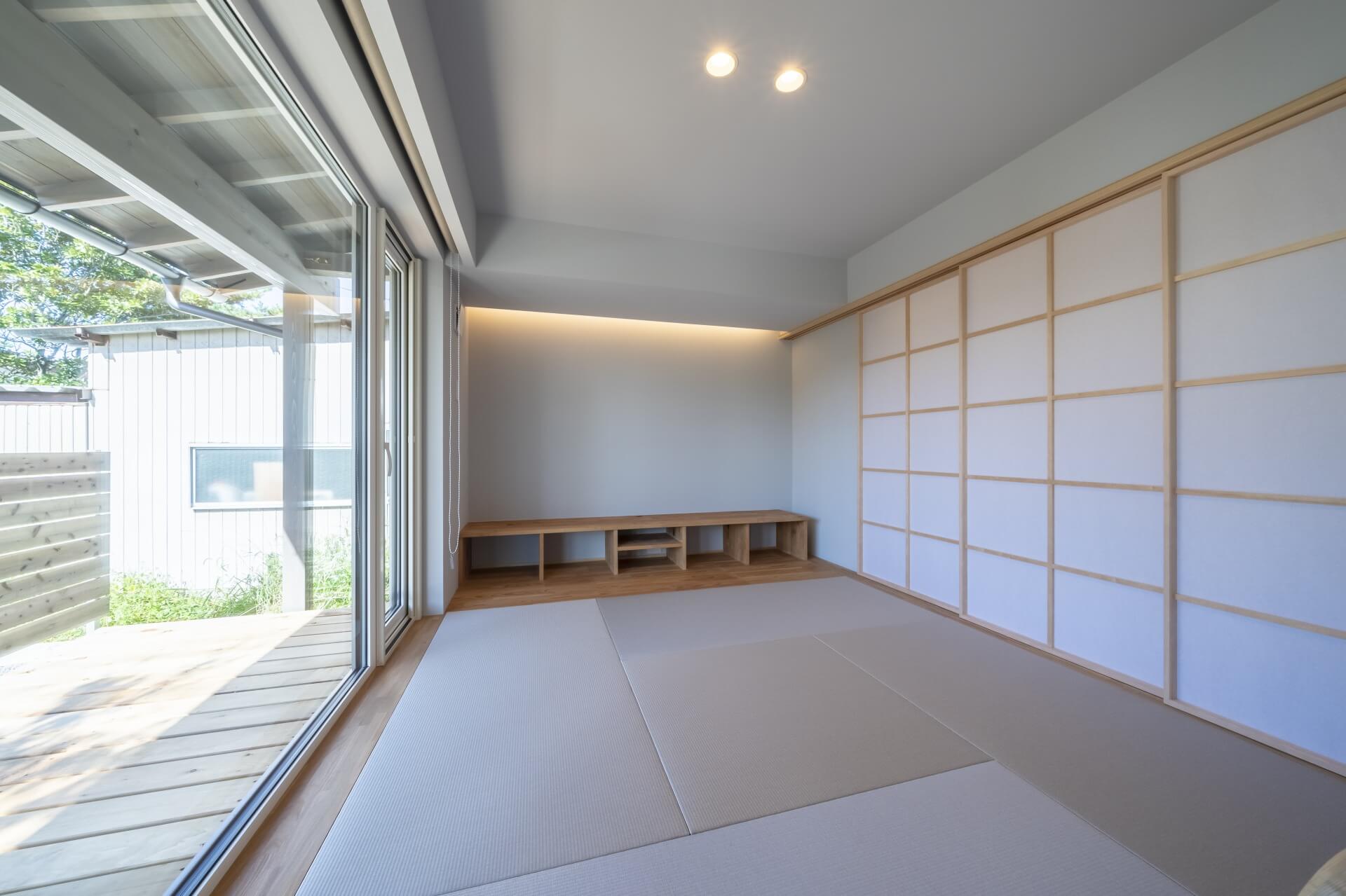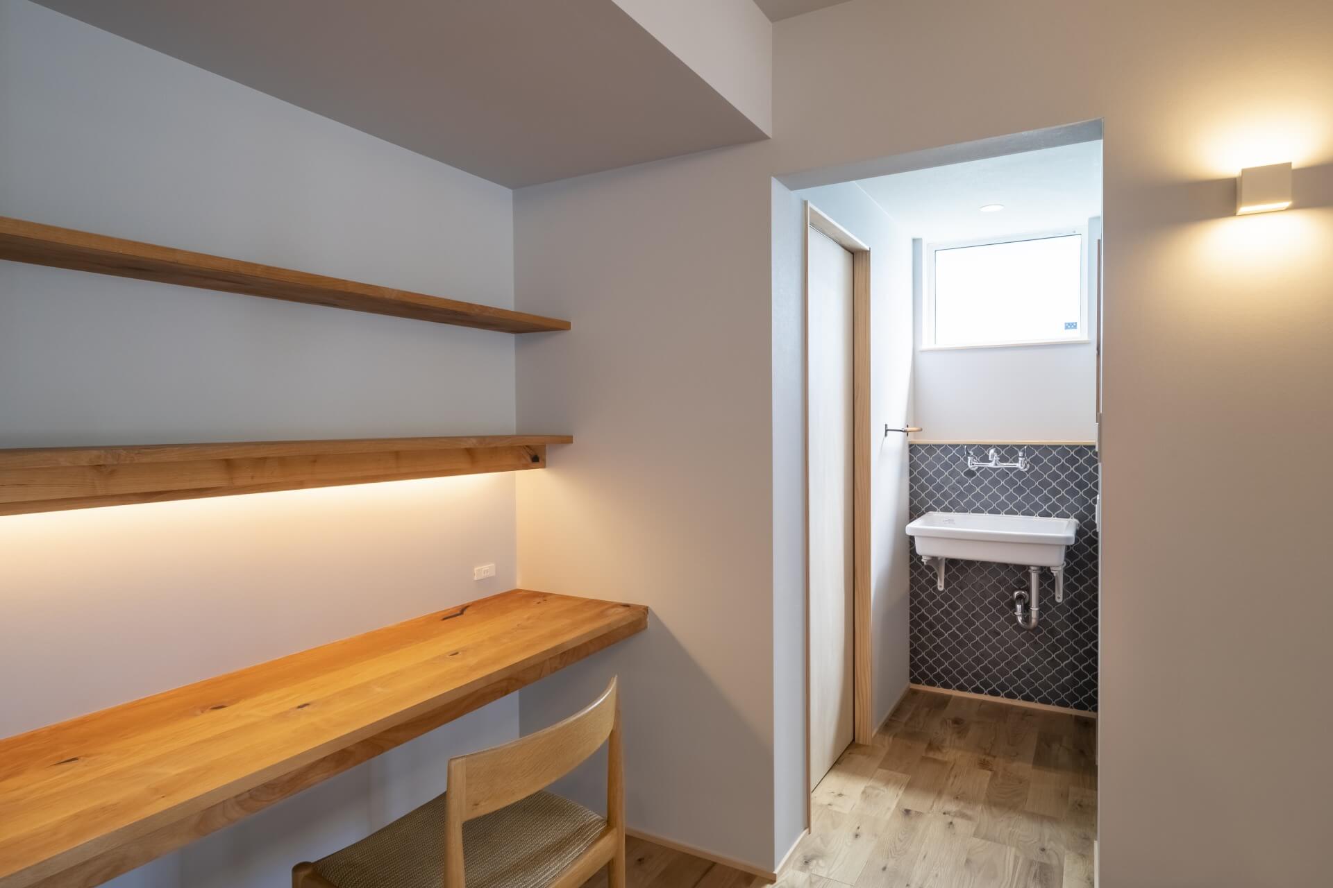 子育て真っ盛りだからこそ、たっぷりの収納や洗濯動線など、家事のしやすさにこだわった家。1階には広々リビングと障子で仕切ることができる小上がりスペースを。いっぽう浴室は2階に配し、洗濯→室内干し→収納(WIC)という動線を確保しました。また、生活リズムの異なるご夫婦のため、寝室は防音性にも配慮しました。広々した2階のフリースペースは、家族の成長とともに使いやすく変化していきます。