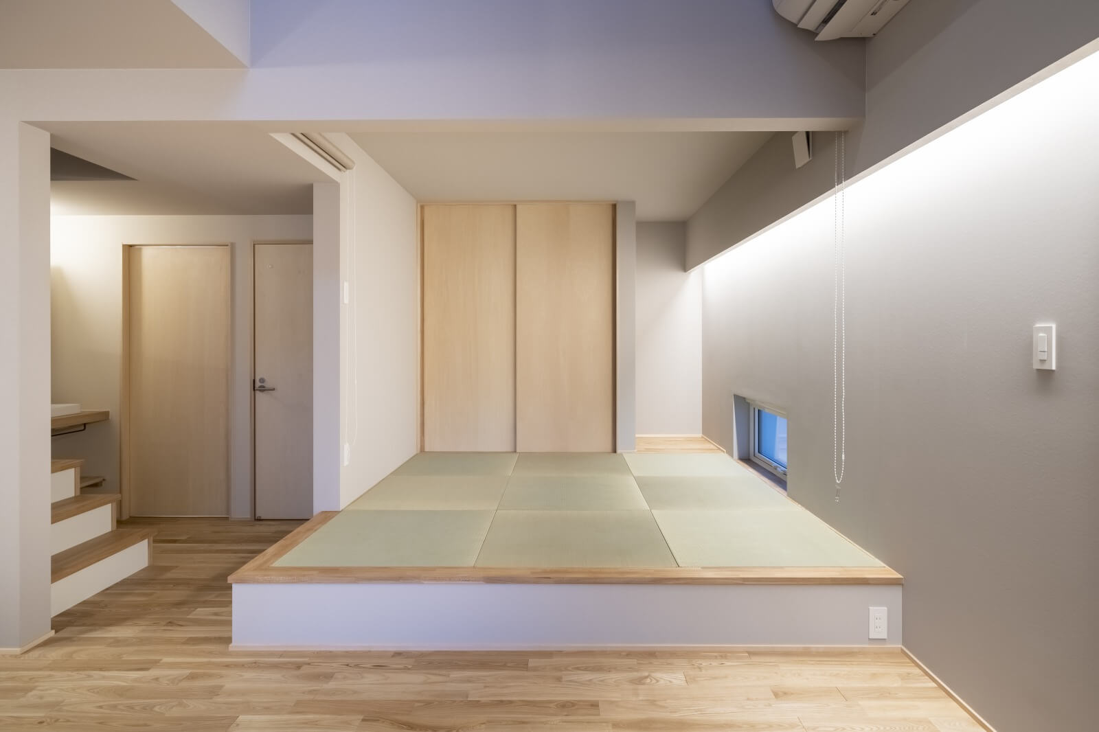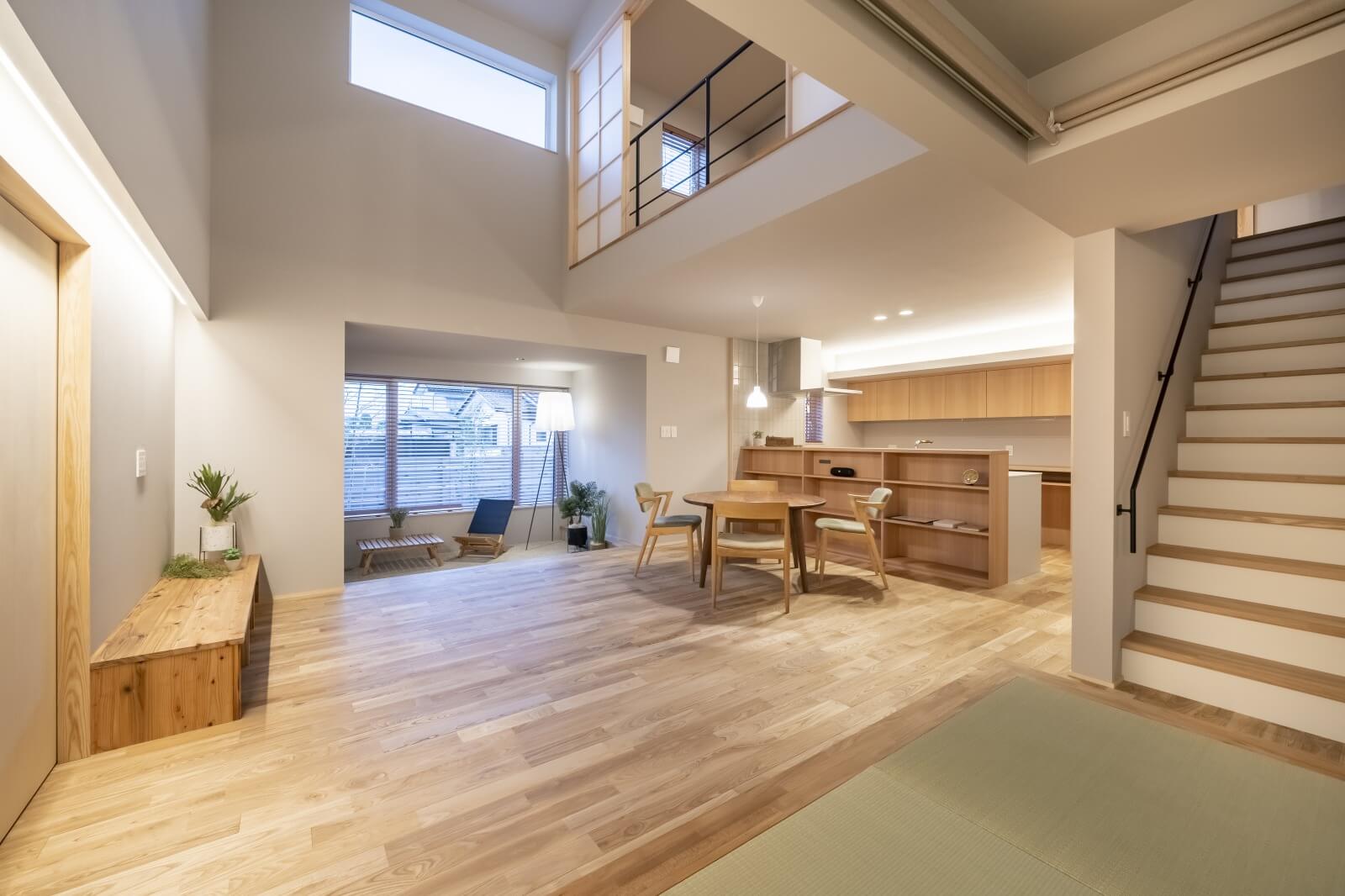 ◉親戚や友人家族が集まるパーティーでも大人数で食事ができるリビングと小上がり畳。