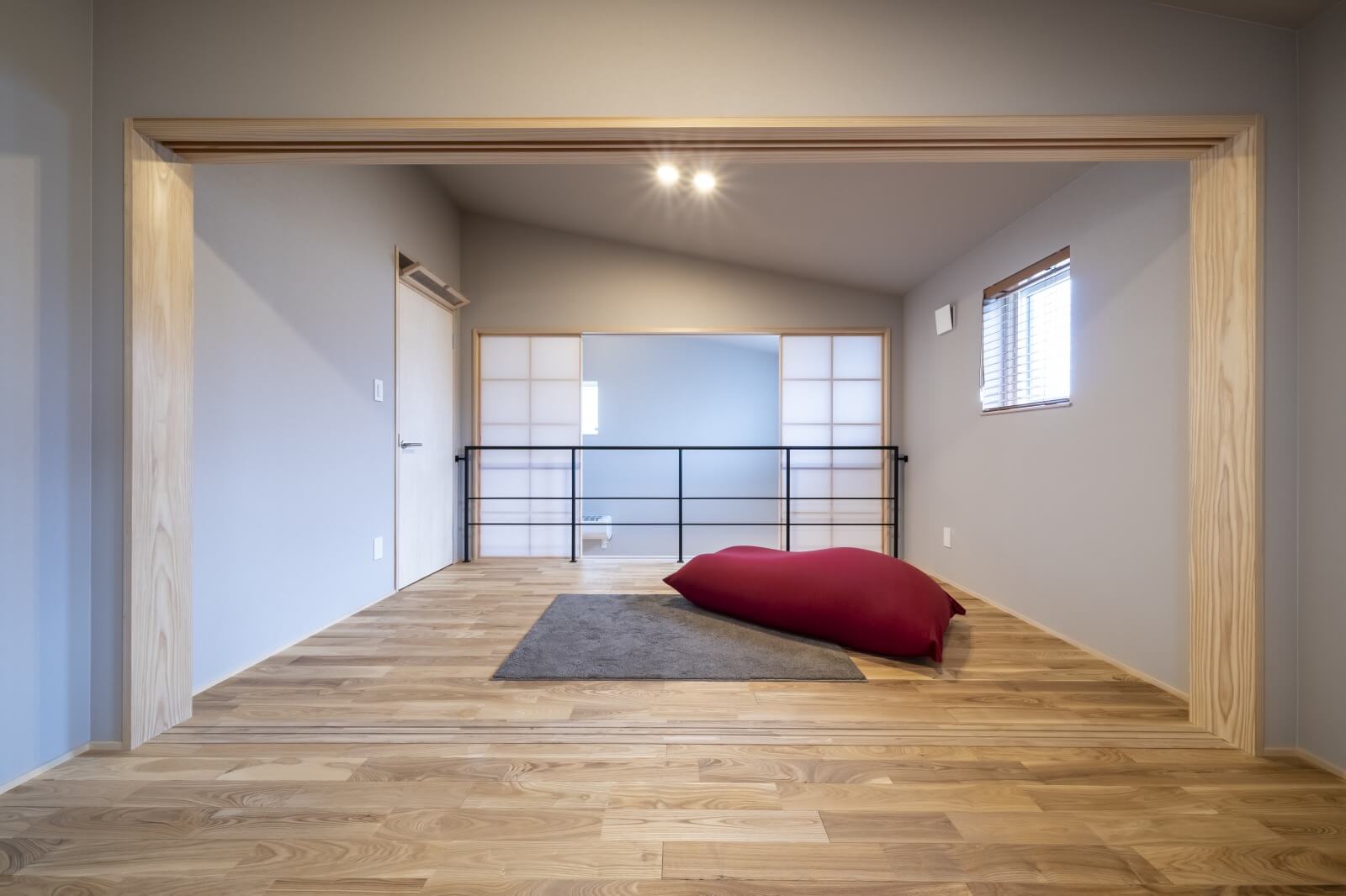 ◉広々とした吹き抜け部分の空間をゆるやかに仕切る障子。