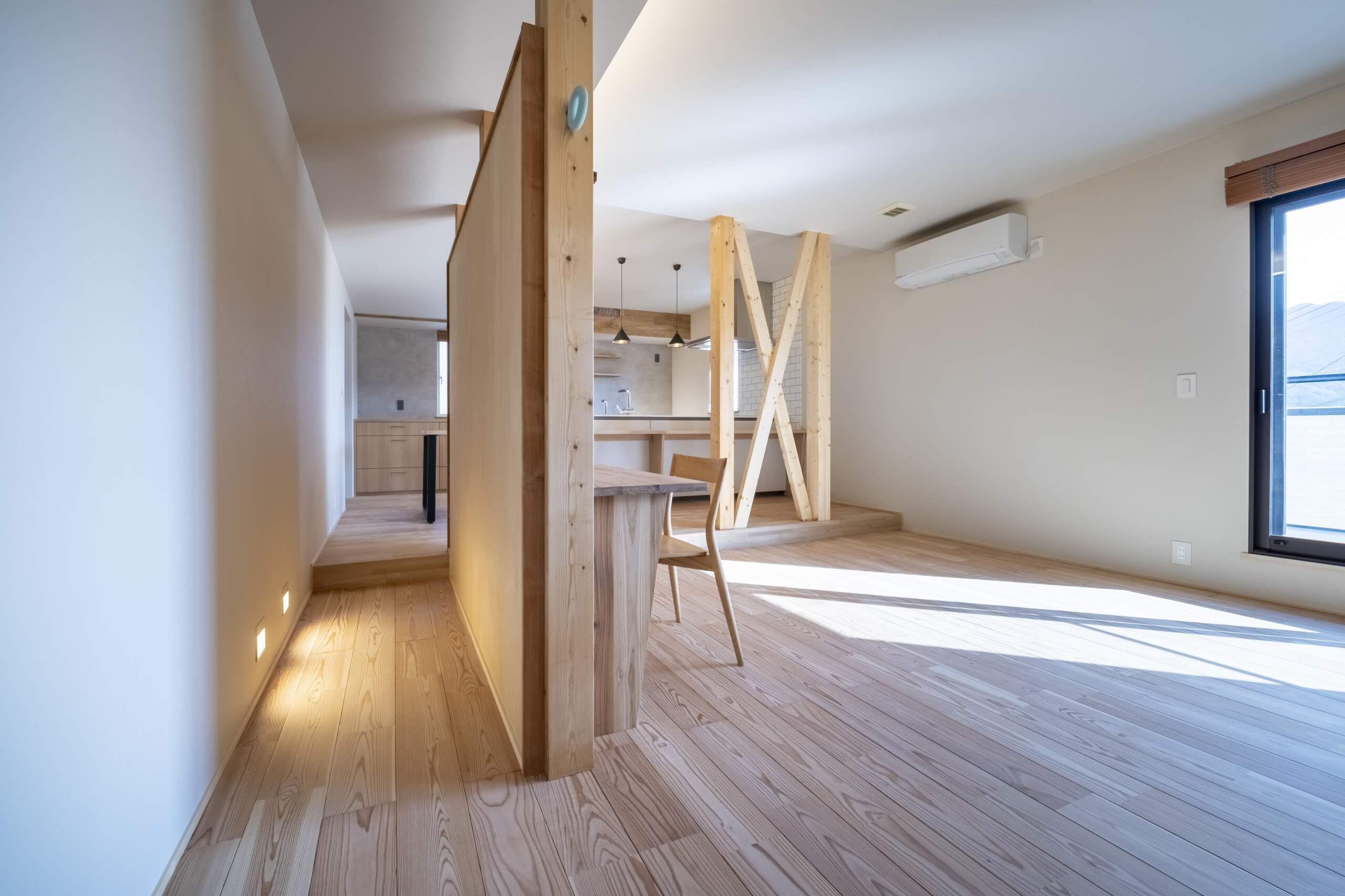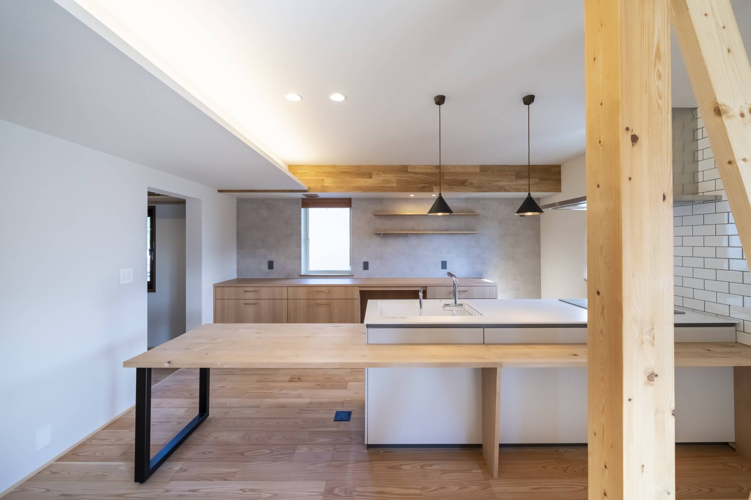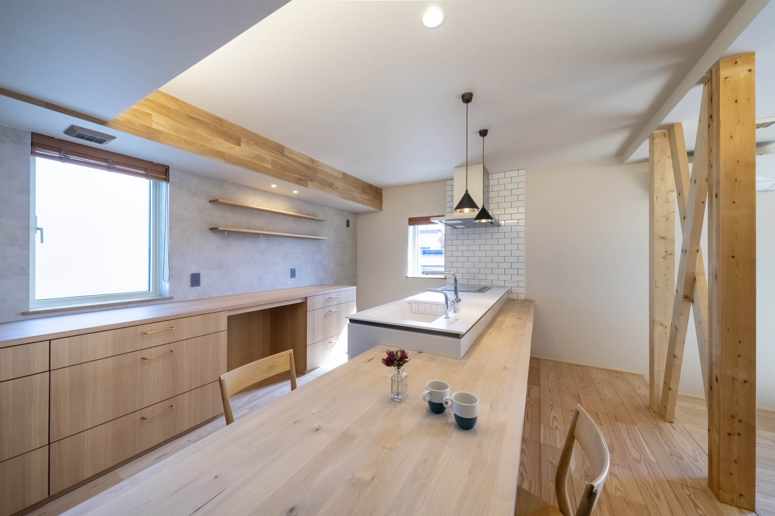 築約20年のご実家の2階部分を中心にリノベーション。廊下と2つの洋室だったスペースは、バルコニーからの明るさが気持ちいい約22畳の大空間に! ダイニングテーブルと一体になったキッチンは特に広々として、お料理やお菓子作りの時間が楽しくなりそうです!