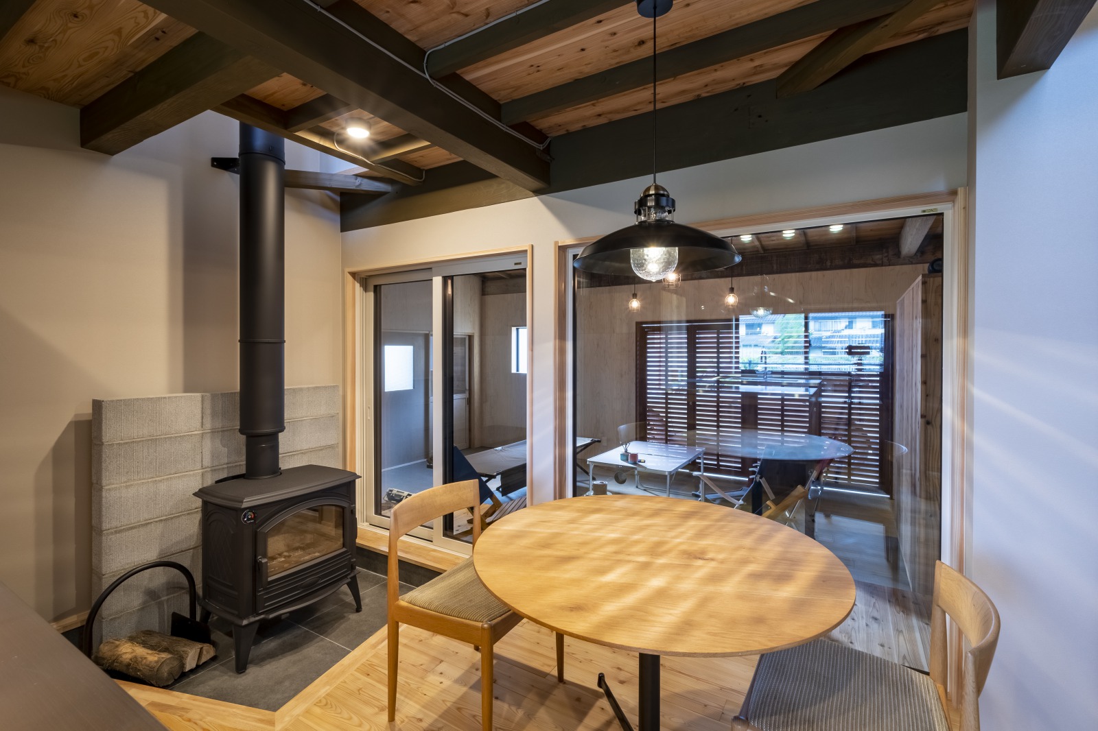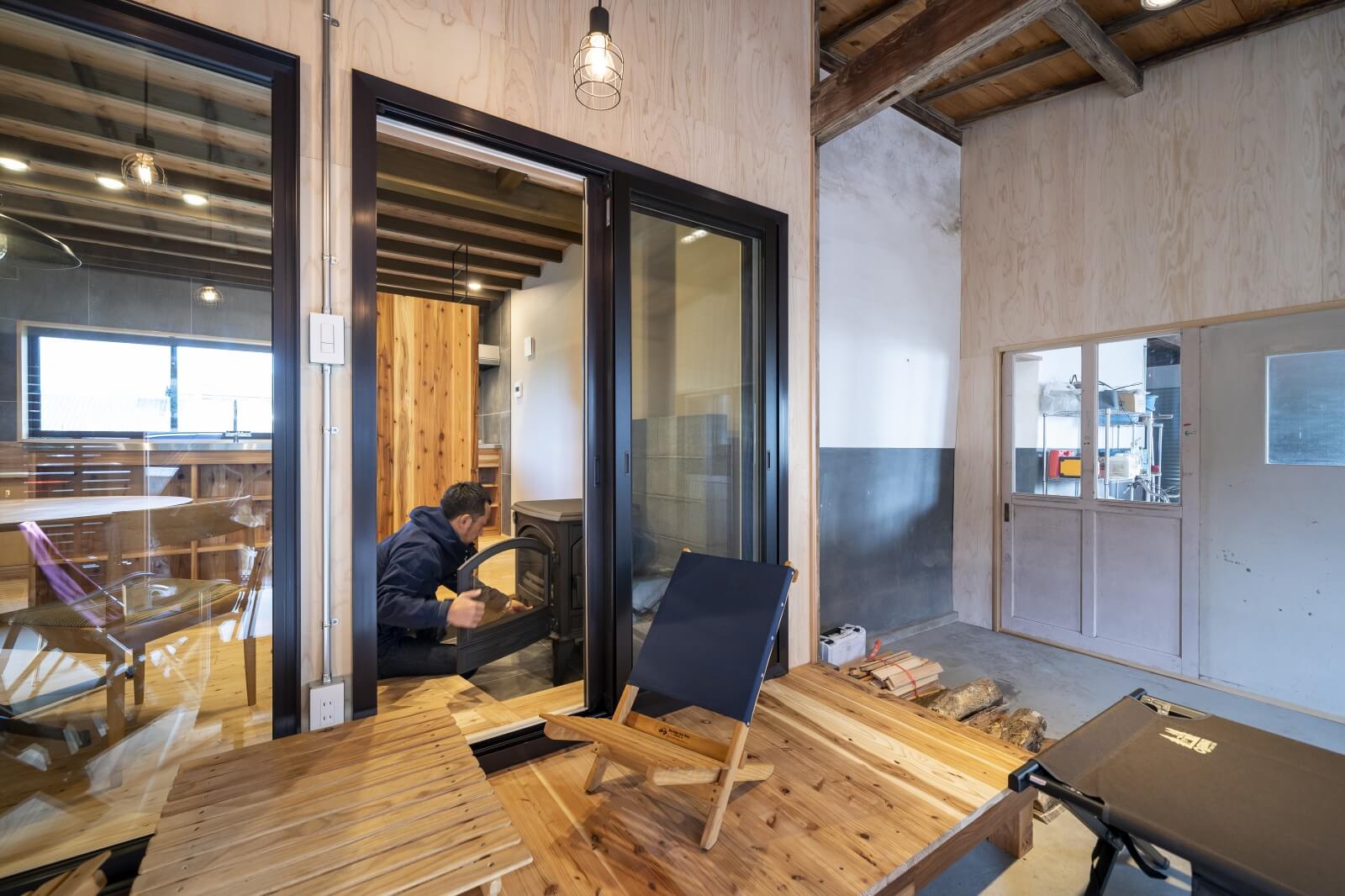 大きな母屋の隣に建つ築約80年のいわゆる納屋をリノベーション!既存のものは活かしつつ、断熱・気密施工をしっかりと行い、一年中快適な空間に変身しました。外と繋がる土間ダイニング、シンプルで使いやすい造作キッチン、そしてこれからの季節に大活躍の薪ストーブと、普段からアウトドアライフを楽しむオーナーさんらしい空間が完成しました!