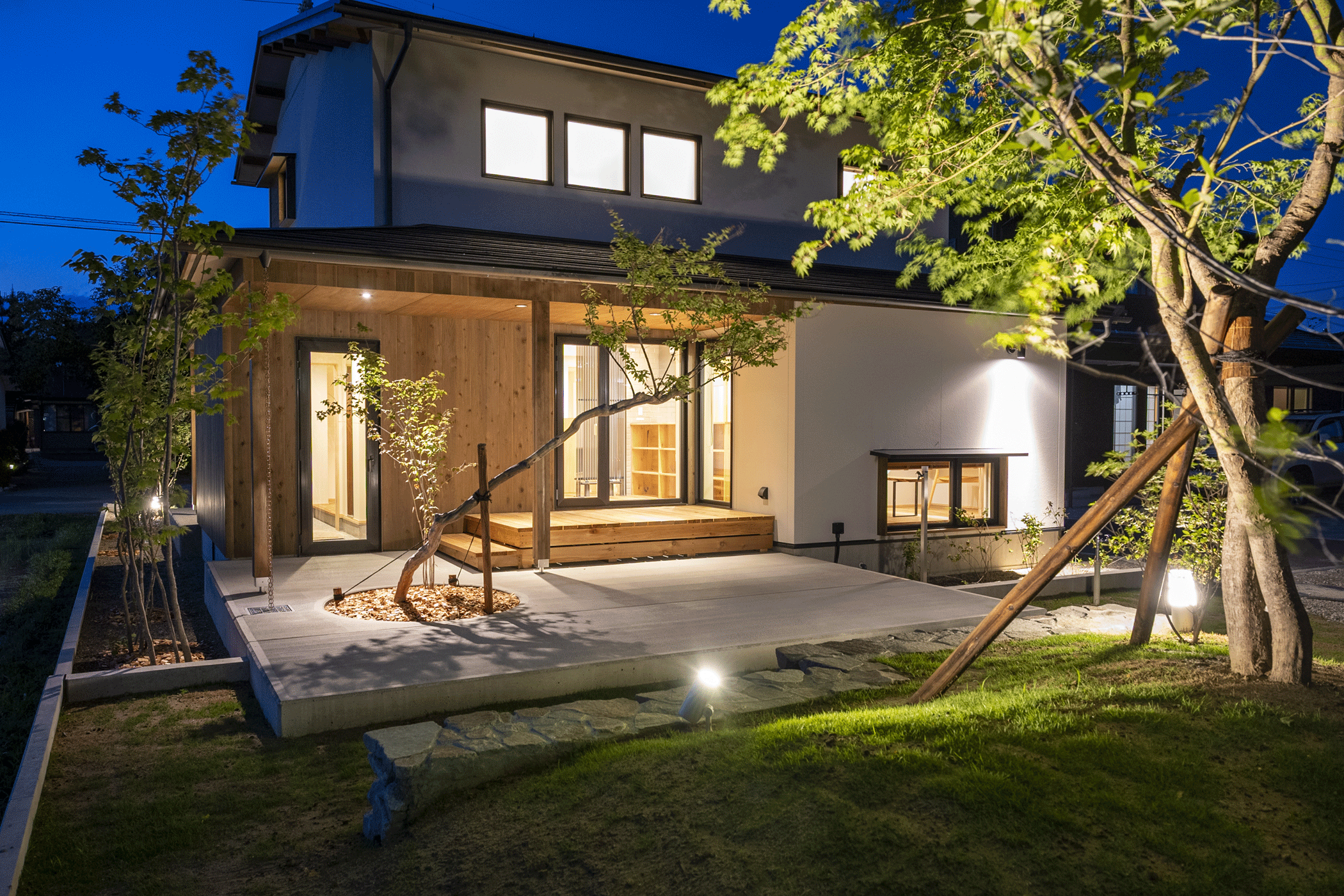 須坂市八重森広々デッキと庭を楽しむ住まい