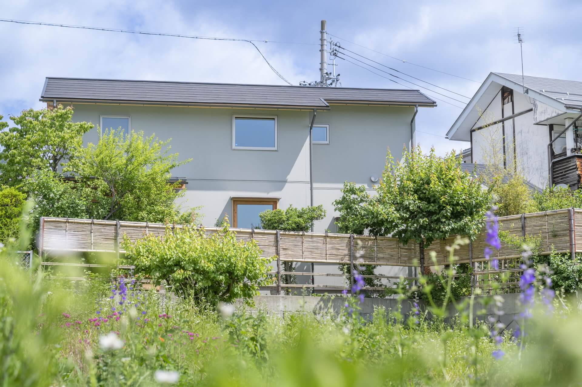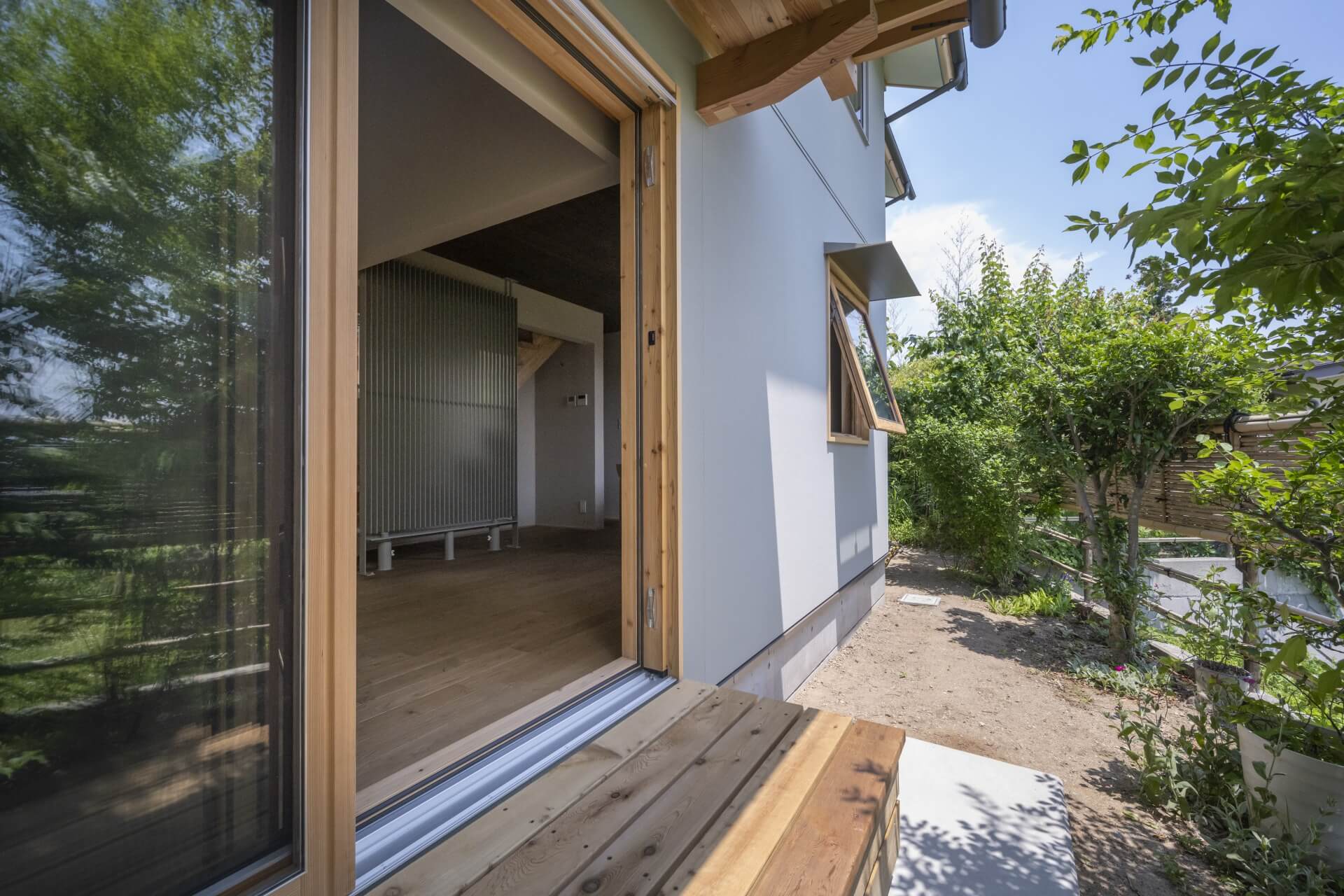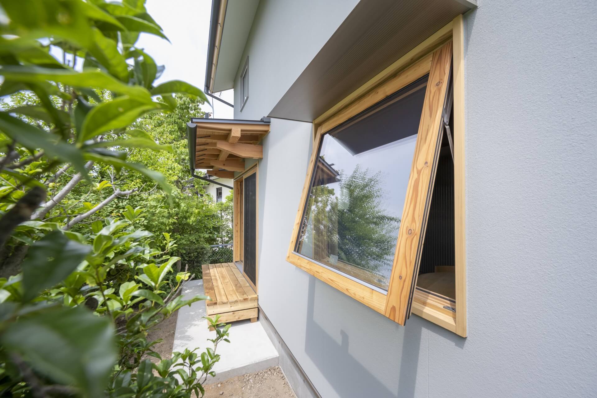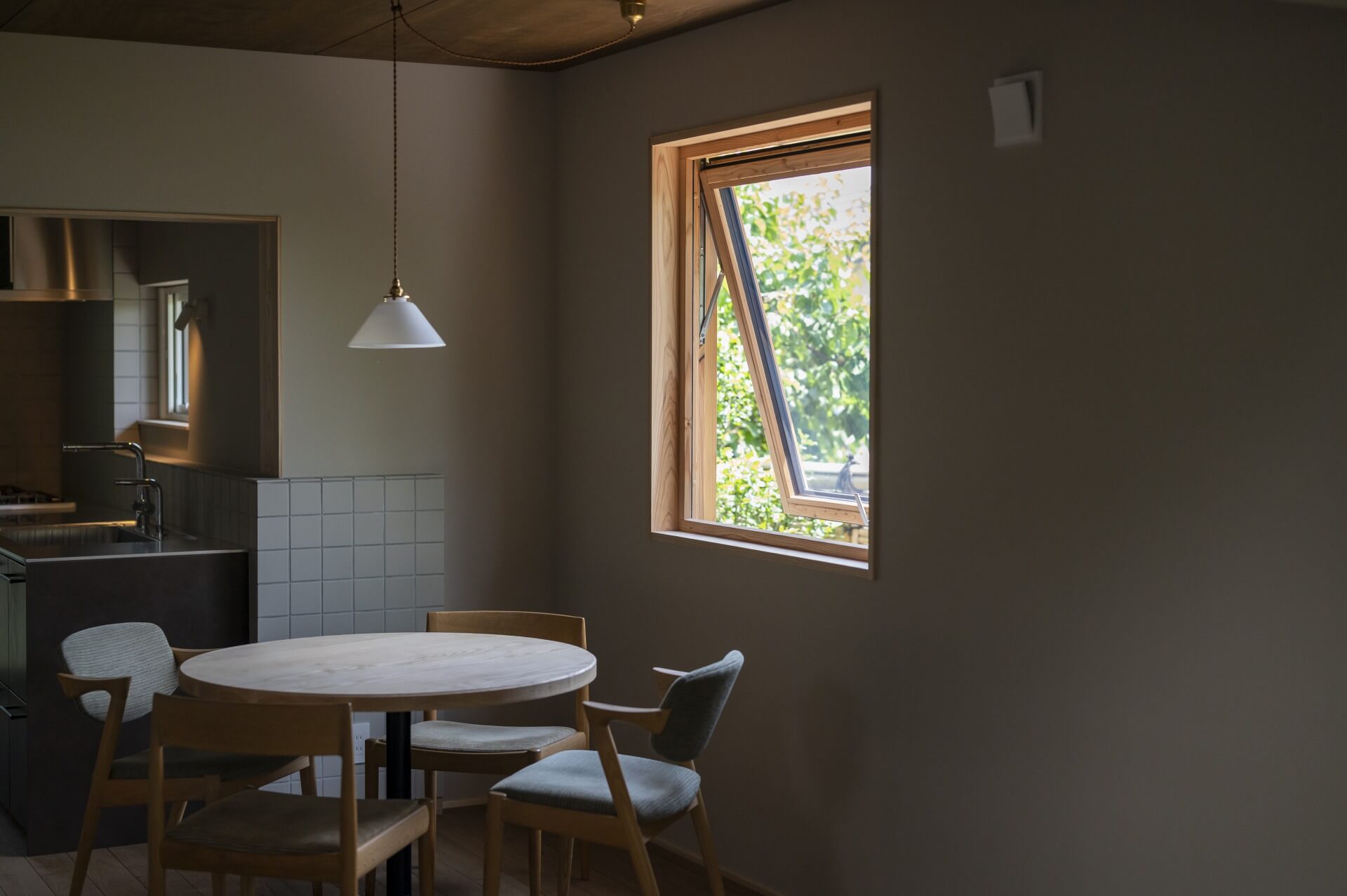 高低差のある敷地だからこそ、魅せる暮らしがあります。自然の美しい陰影を感じながら、窓からの景色を望み、日々を豊かに暮らす・・・ 冷暖房の音もなく、静かな時を楽しむ、そんな家が完成しました。木製のサッシが、窓からの毎日の風景をよりいっそう引き立ててくれます。